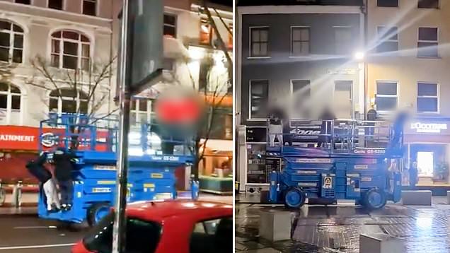 men arrested after joyriding 6mph scissor lift through city centre
