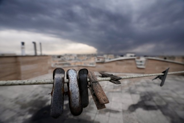 Dark clouds have been gathering above Tehran today (Picture: AP)
